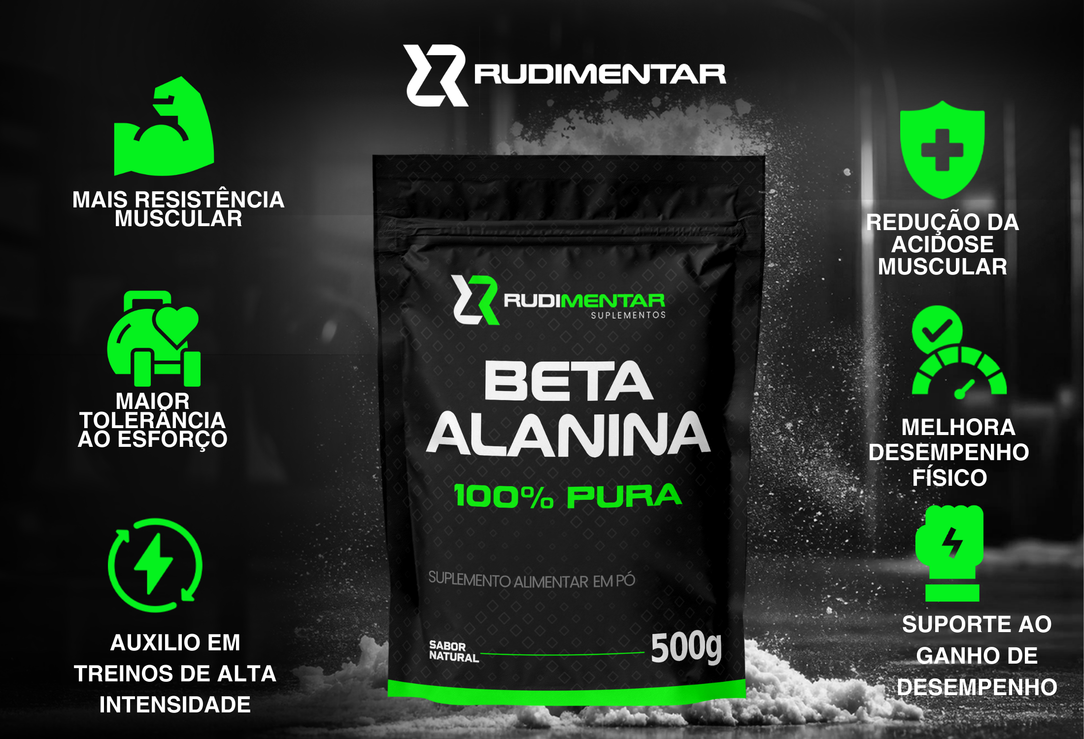A beta-alanina é um aminoácido que ajuda a aumentar a resistência muscular e retardar a fadiga, sendo muito utilizada em treinos intensos e de alta repetição.
