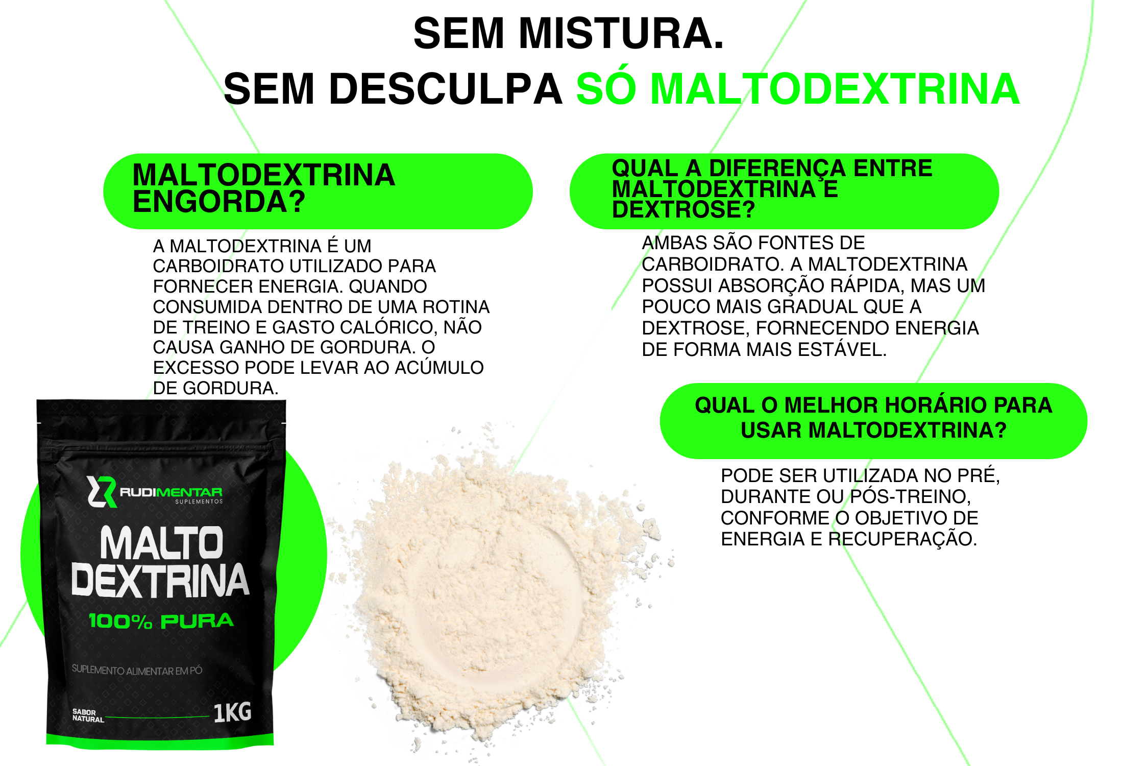 Não exatamente. Apesar de se transformar em glicose no organismo, a maltodextrina é um carboidrato complexo industrializado, com absorção rápida.